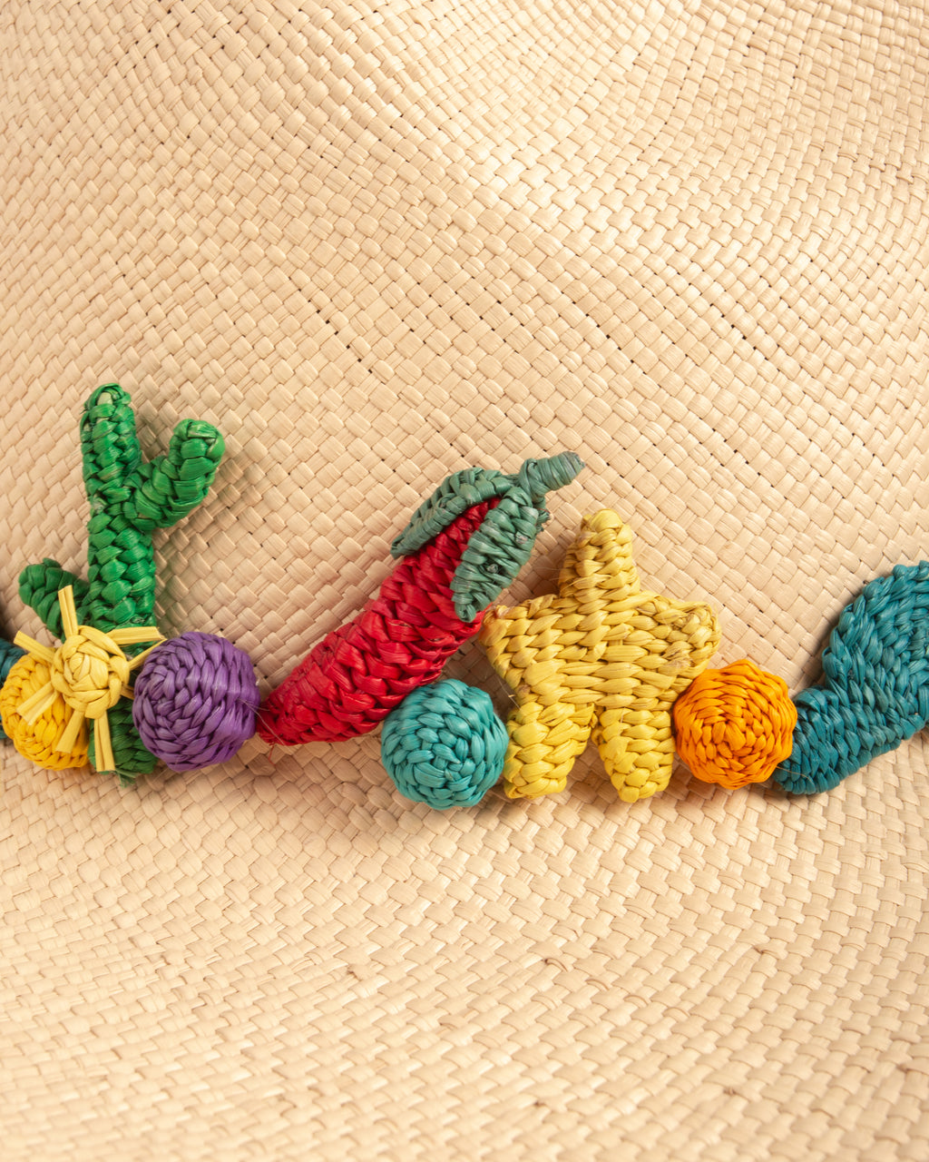 Designed and developed in partnership with female artisans in Nariño, Colombia, every miniature ornament, the stars, the suns, the cacti, the chillies, among others, are handwoven with patience, meaning, and heart.